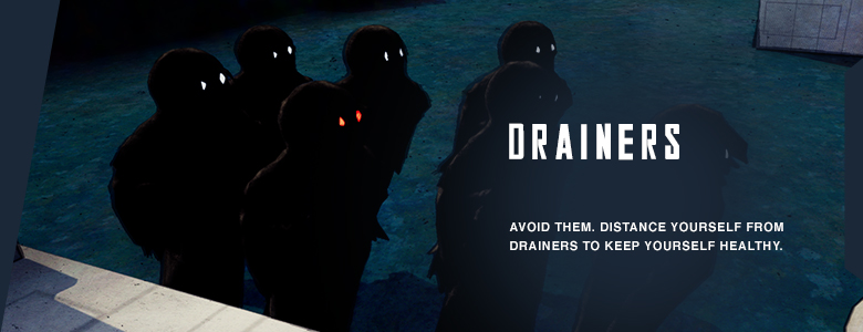 - Fight Drainers to extract Health and Time currency, which you can use with your Eyegun.
